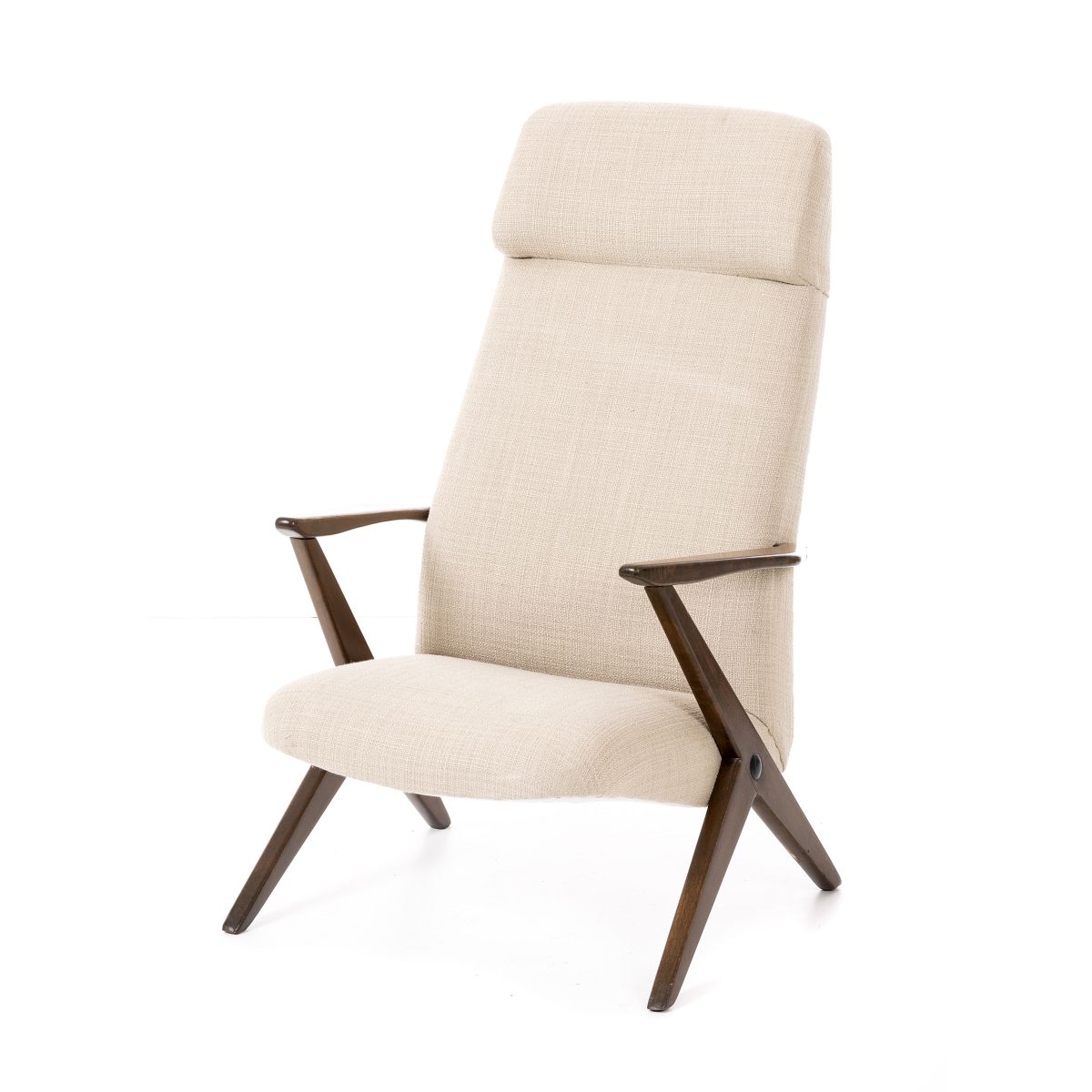 Nórdico, c.1960, estrutura em mogno, estofo em linho. Dim.: 108x68x55 cm.