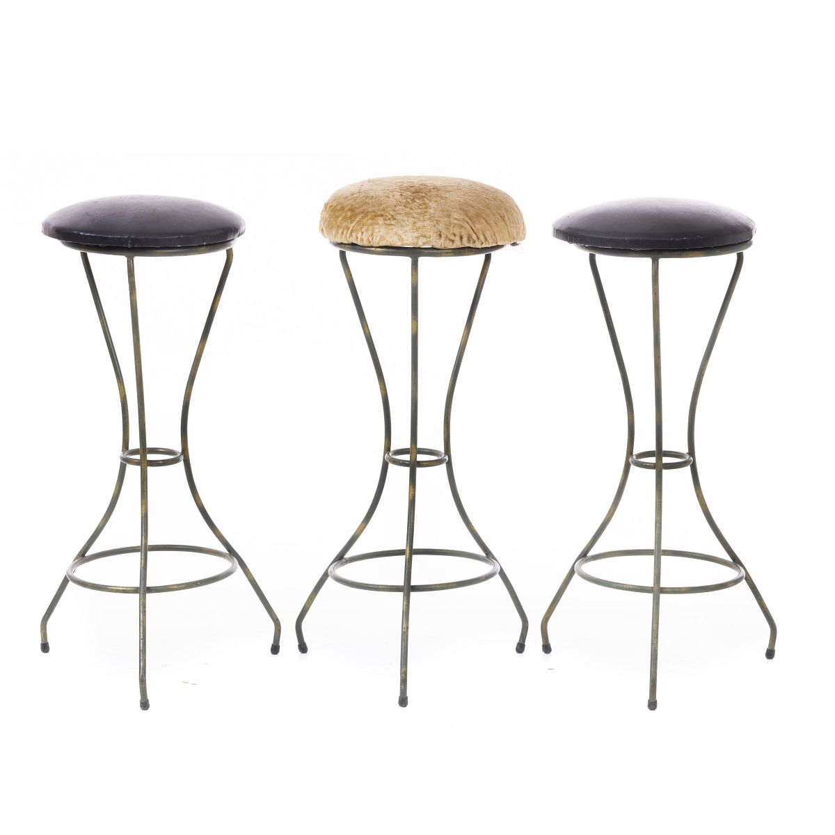 França, c.1950, estrutura em ferro lacado, assentos estofados amoviveis, dois não originais Sinais de uso. Dim.: 77 cm