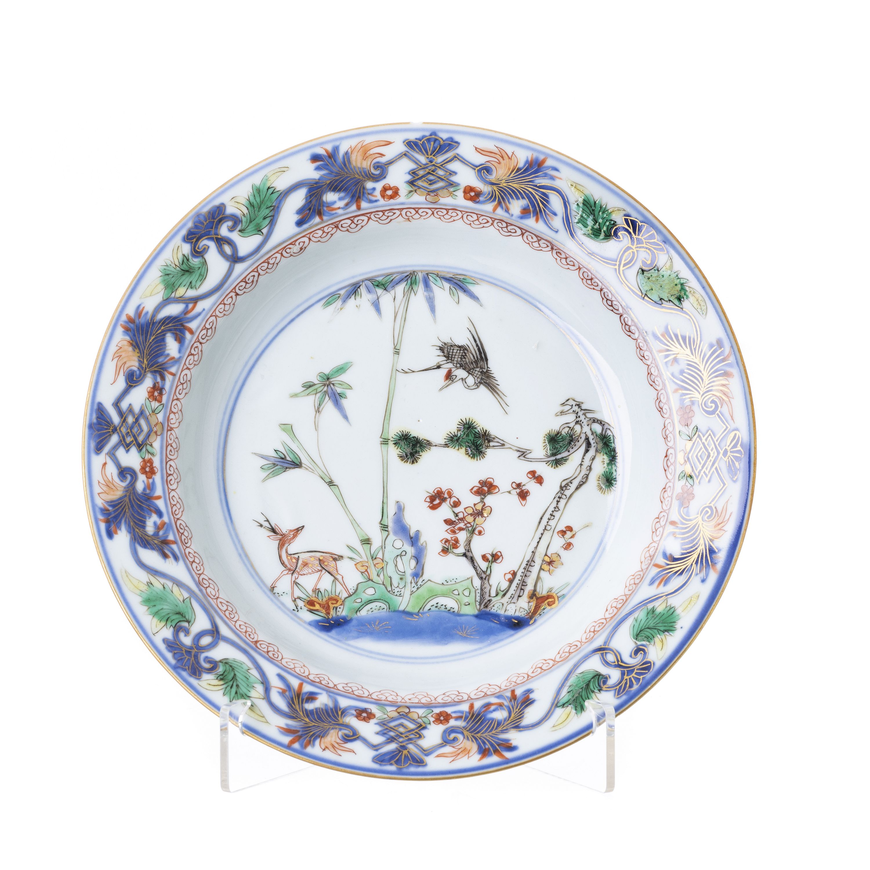 150. Prato 'veado e ave' em porcelana da China, Kangxi