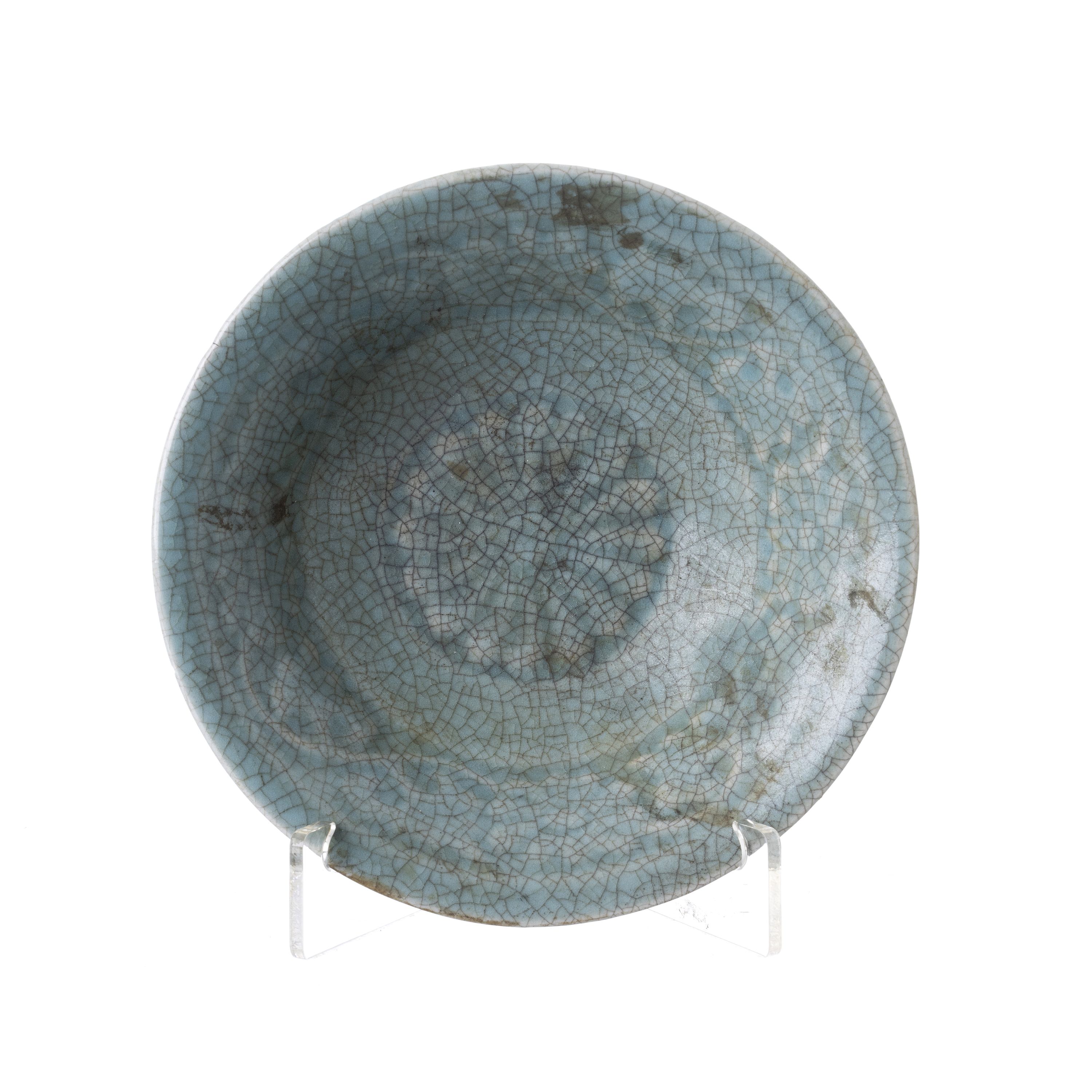 China, Minguo, cerâmica vidrada monócroma a verde, decoração relevada de motivos vegetallistas. Sinais de uso, falha no bordo. Dim.: 14,3 cm.