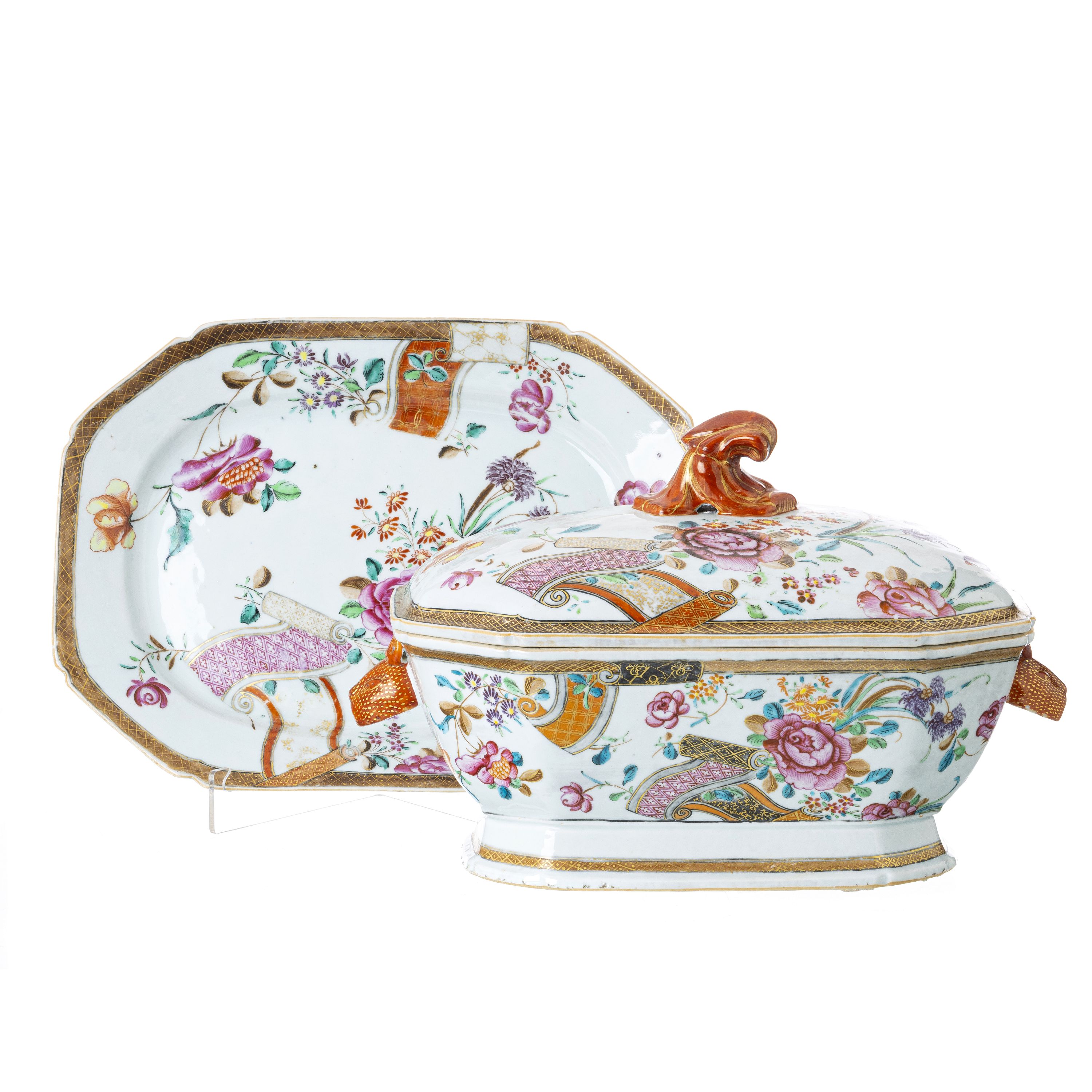 216. Terrina com travessa em porcelana chinesa, Qianlong