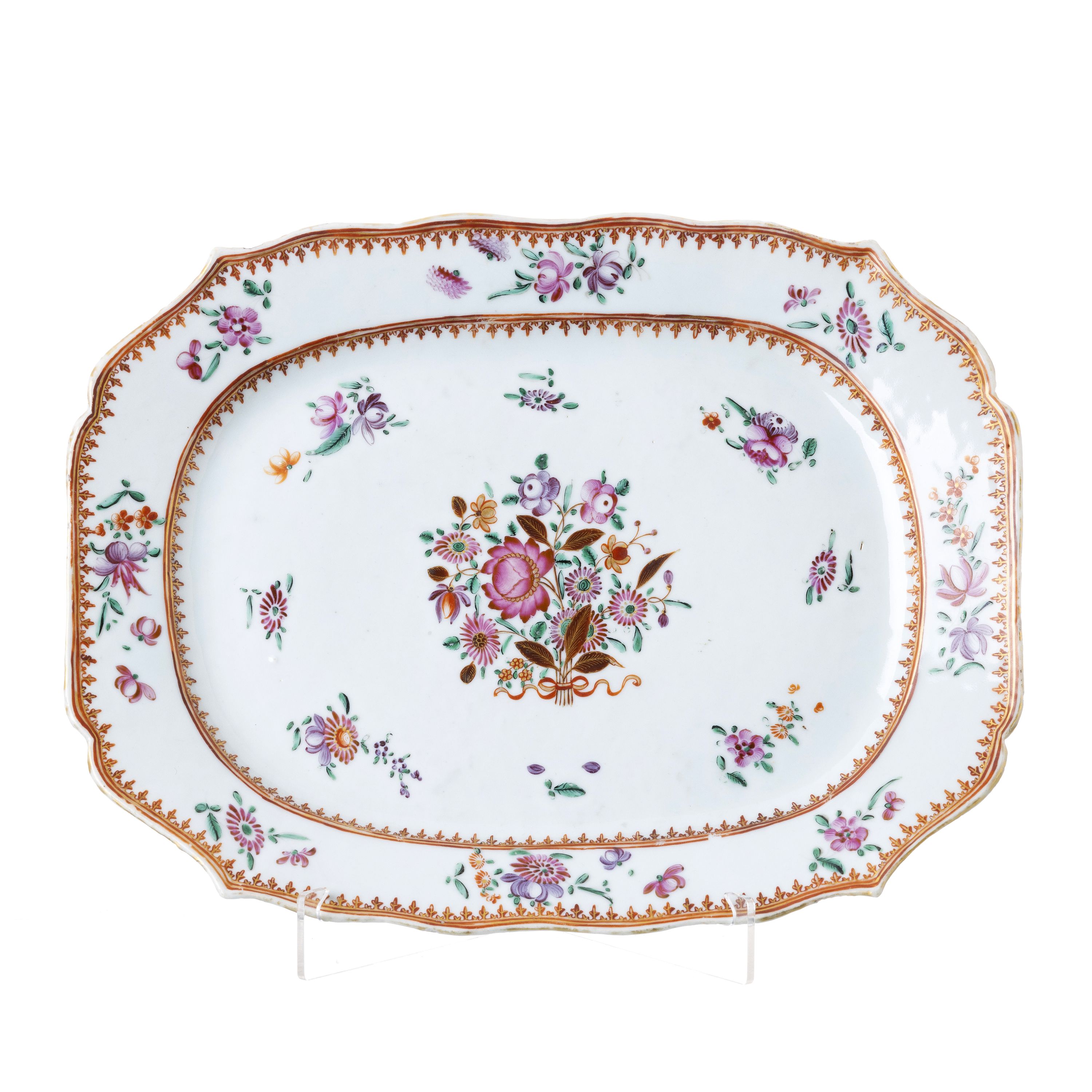 China, Qianlong, decoração polícroma e a ouro com flores. Pequenas falhas no bordo. Dim.: 34,5 cm.