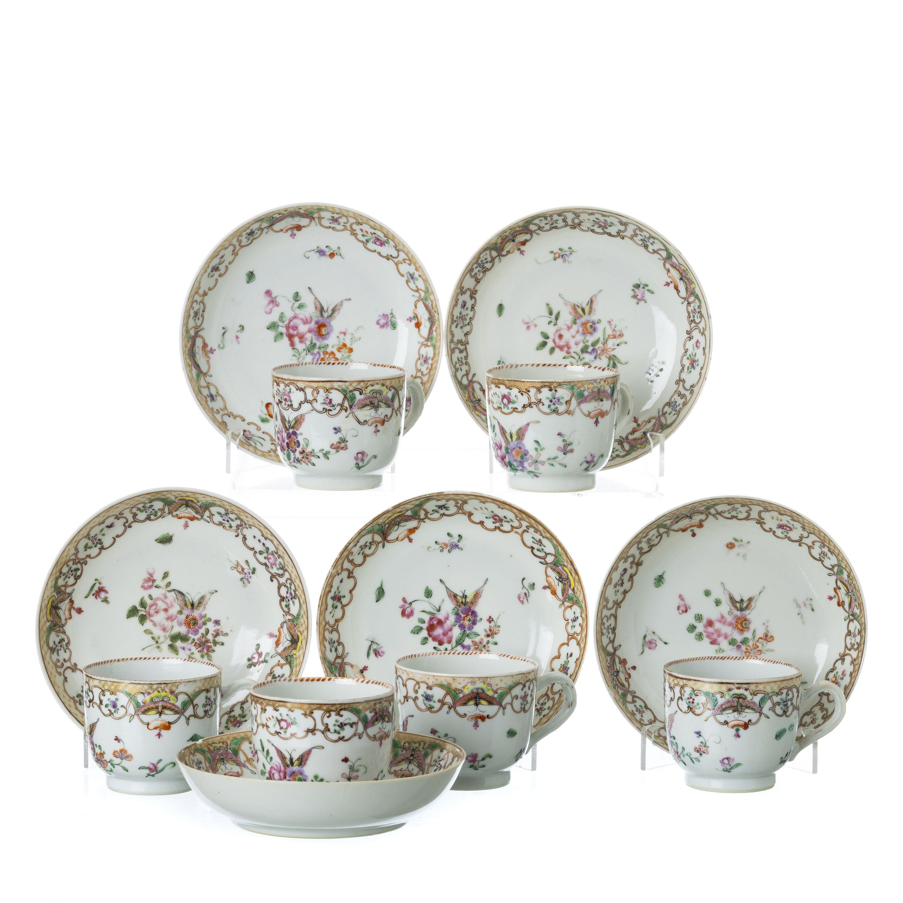 253. Seis chávenas com pires em porcelana chinesa, Qianlong