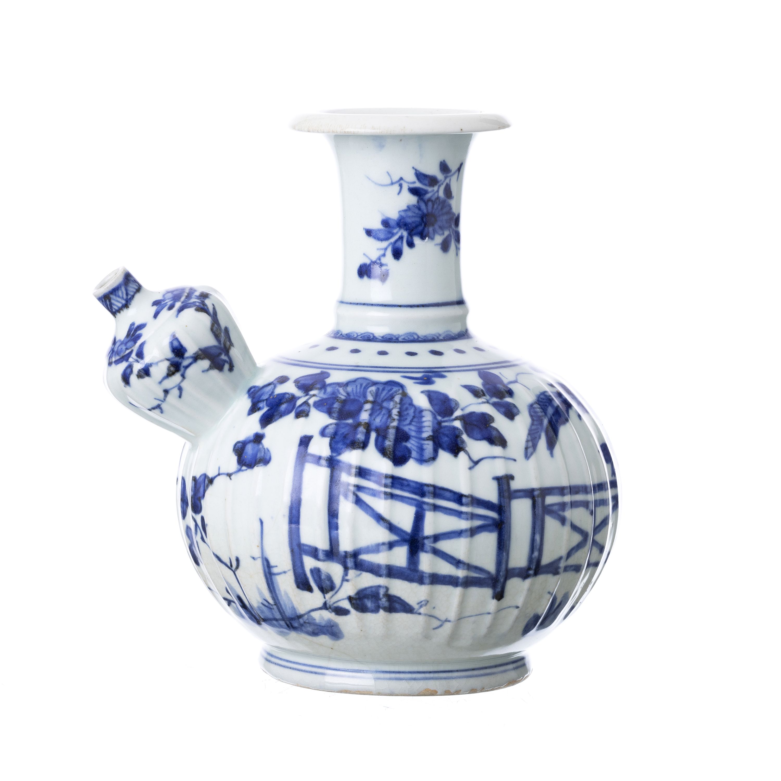 Japão, Edo, decoração a azul com motivos vegetalistas. Pequeno restauro no bocal. Dim.: 22 cm.