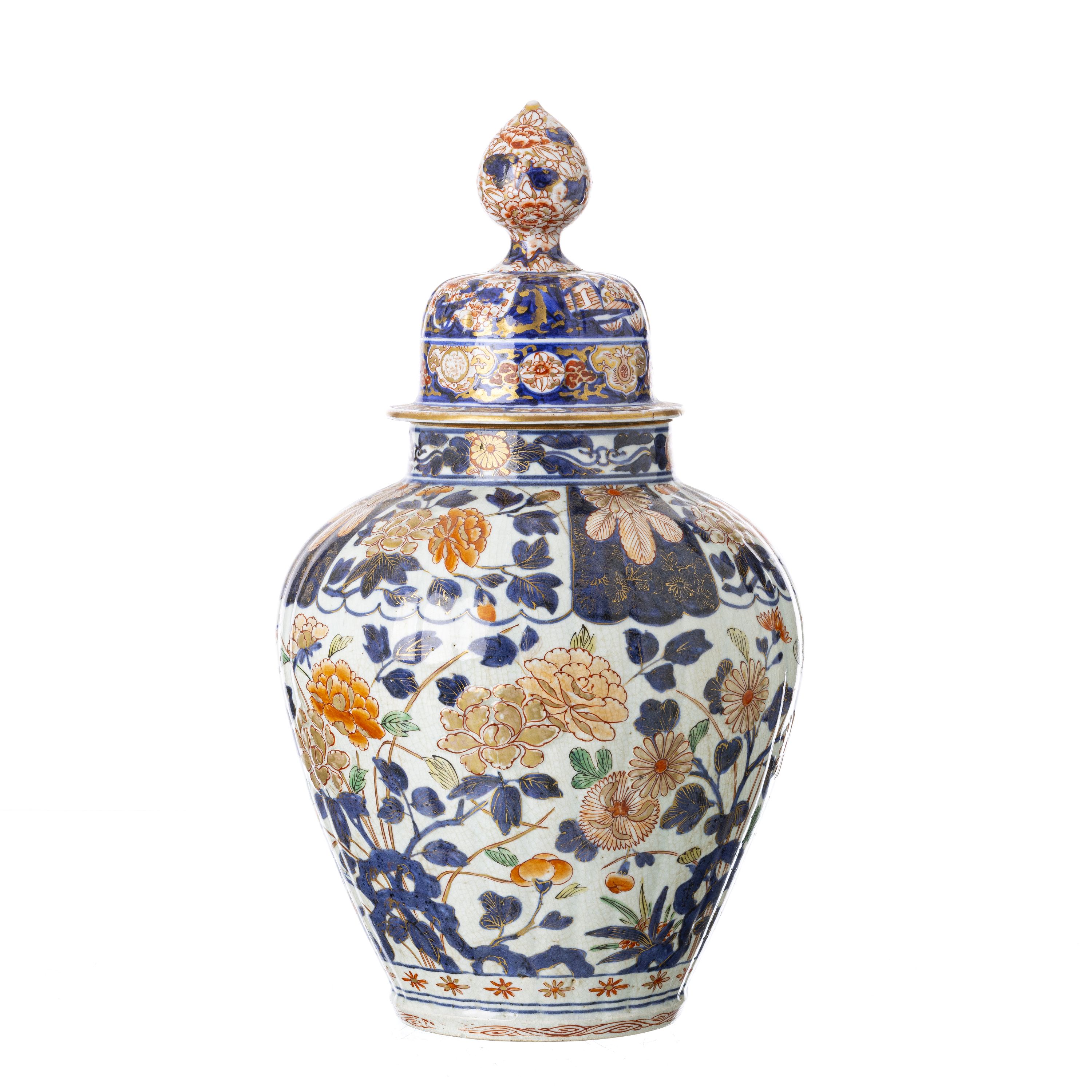 Japão, Edo, porcelena moldada, decoração floral a azul, rouge d efer e ouro. Cabelos. Dim.: 46 cm.