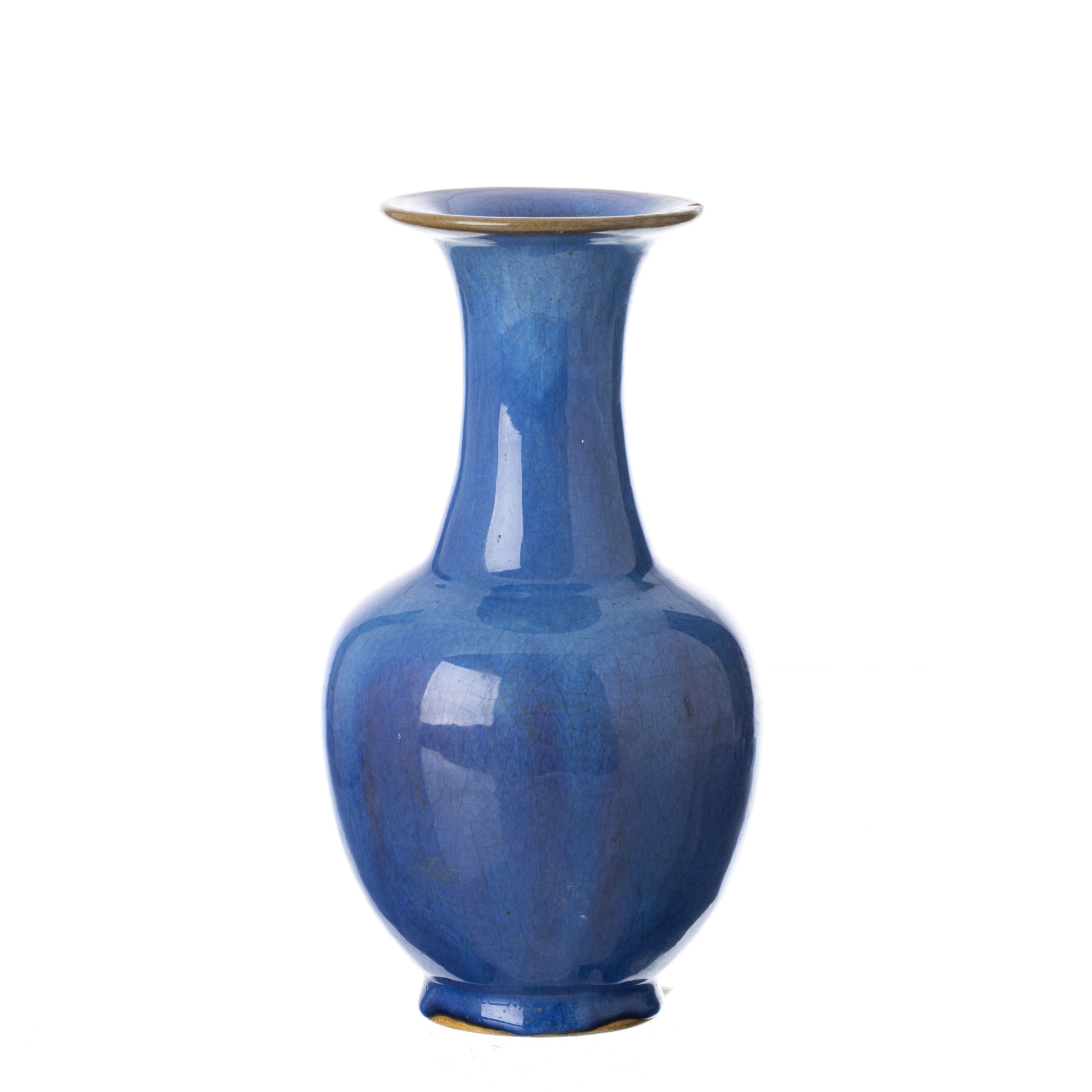 China, séc.XVII/XVIII, decoração monócroma vidrada a azul, com escorridos a púrpura. Pequeno restauro no bordo. Dim.:25cm.