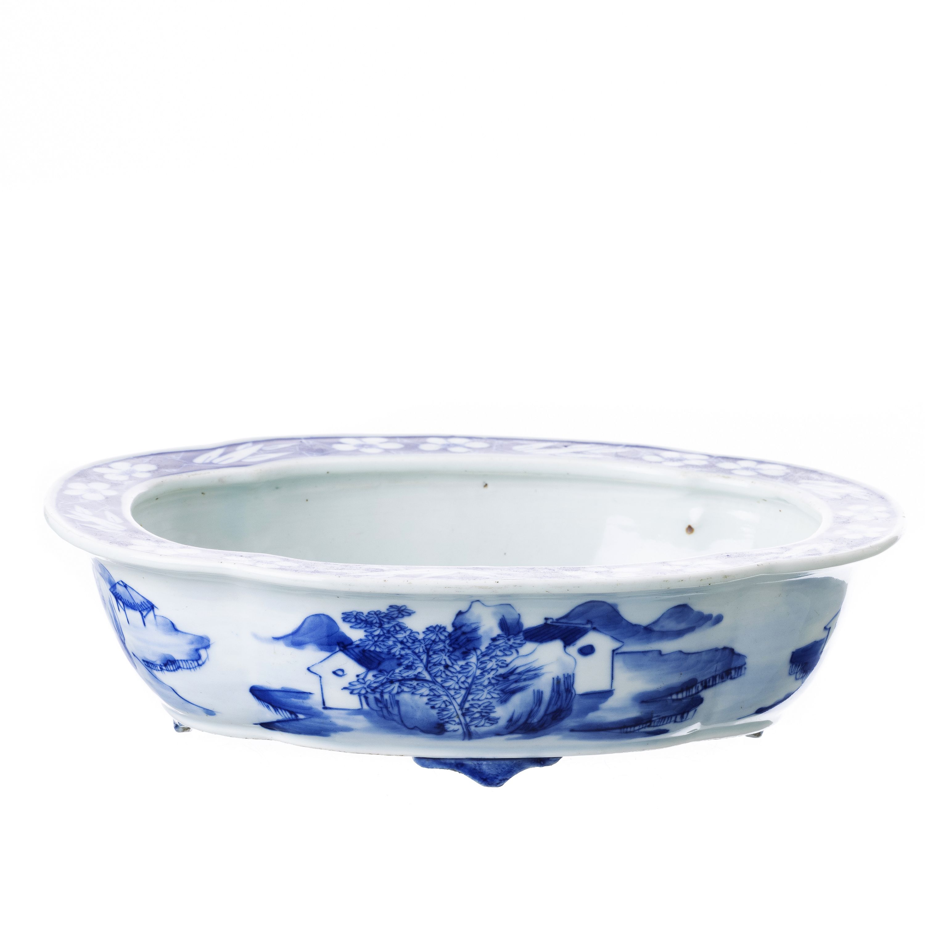 China, Guangxu, decoração a azul e branco representando paisagem com casario. Dim.: 27,5 cm.