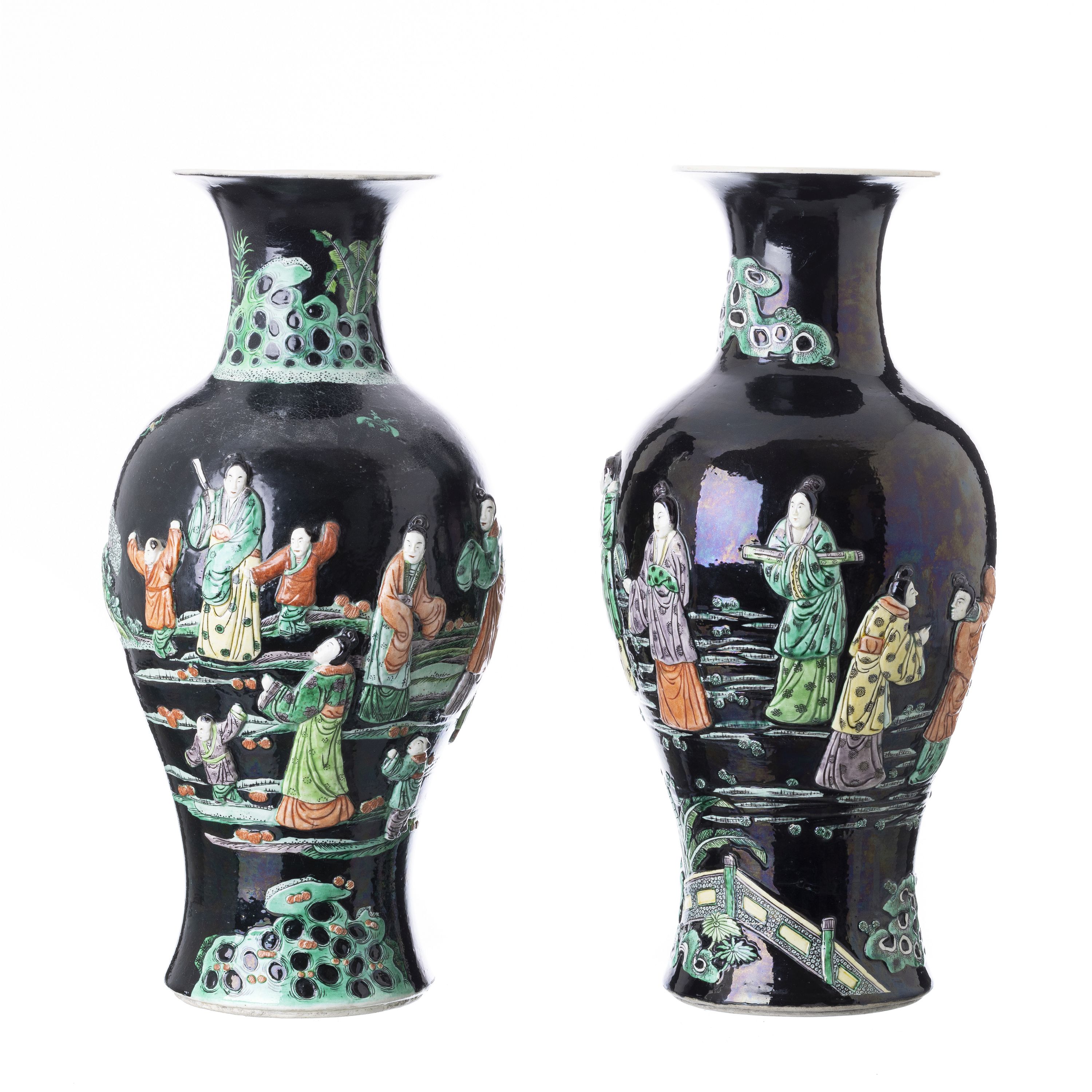 74. Par de jarrões 'famille noir' em porcelana chinesa, Guangxu