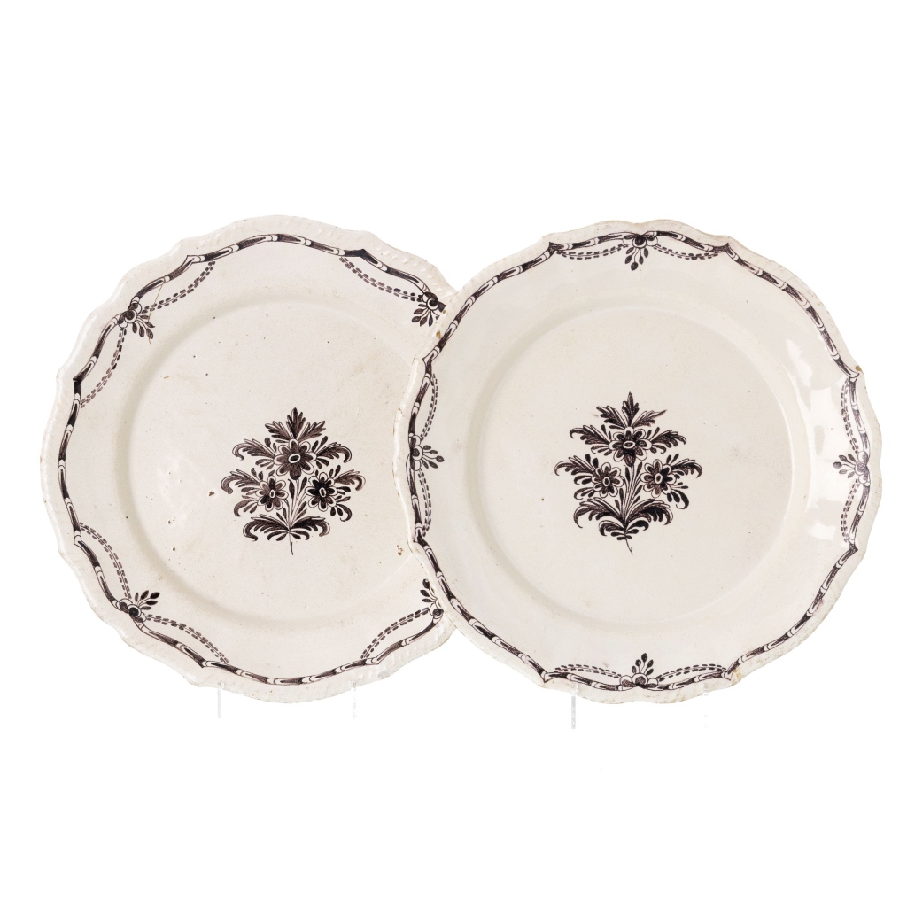 Faiança portuguesa, séc.XVIII, fabrico de Viana, decoração floral vidrada, com aba recortada. Marcados. Dim.:33,5 cm
