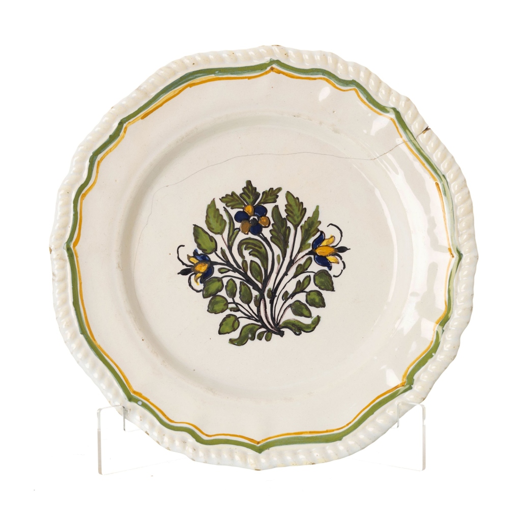 Fabrico atribuível a Viana, séc.XIX, 2ª período, recortado e decoração polícroma com flores. Cabelo gateado. Dim.:30,5 cm.