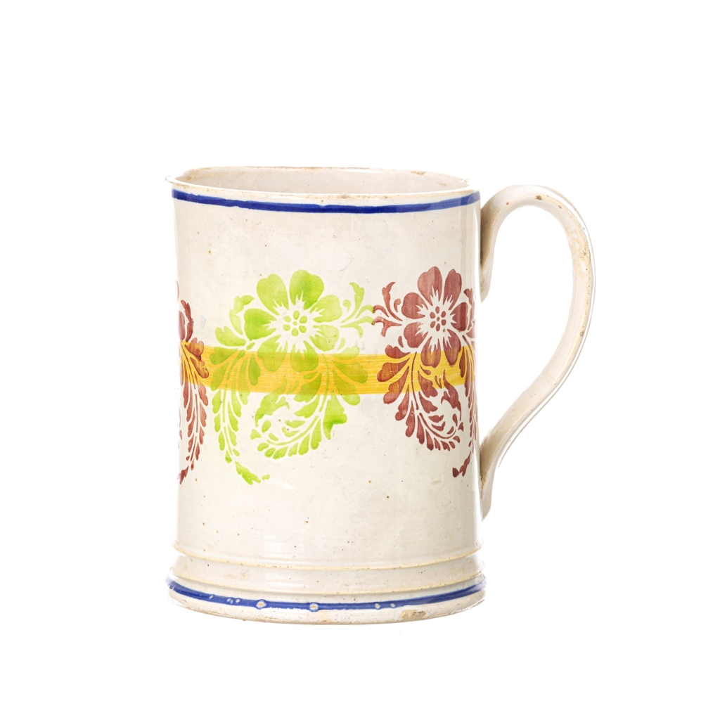 Em faiança portuguesa, séc.XIX, fabrico atribuível a Coimbra com decoração floral. Sinais de uso. Dim.:17,5 cm