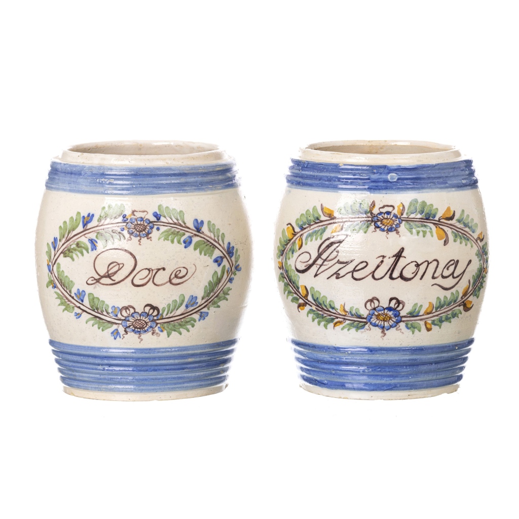 467. Par de potes 'azeitonas' e 'doce' em faiança