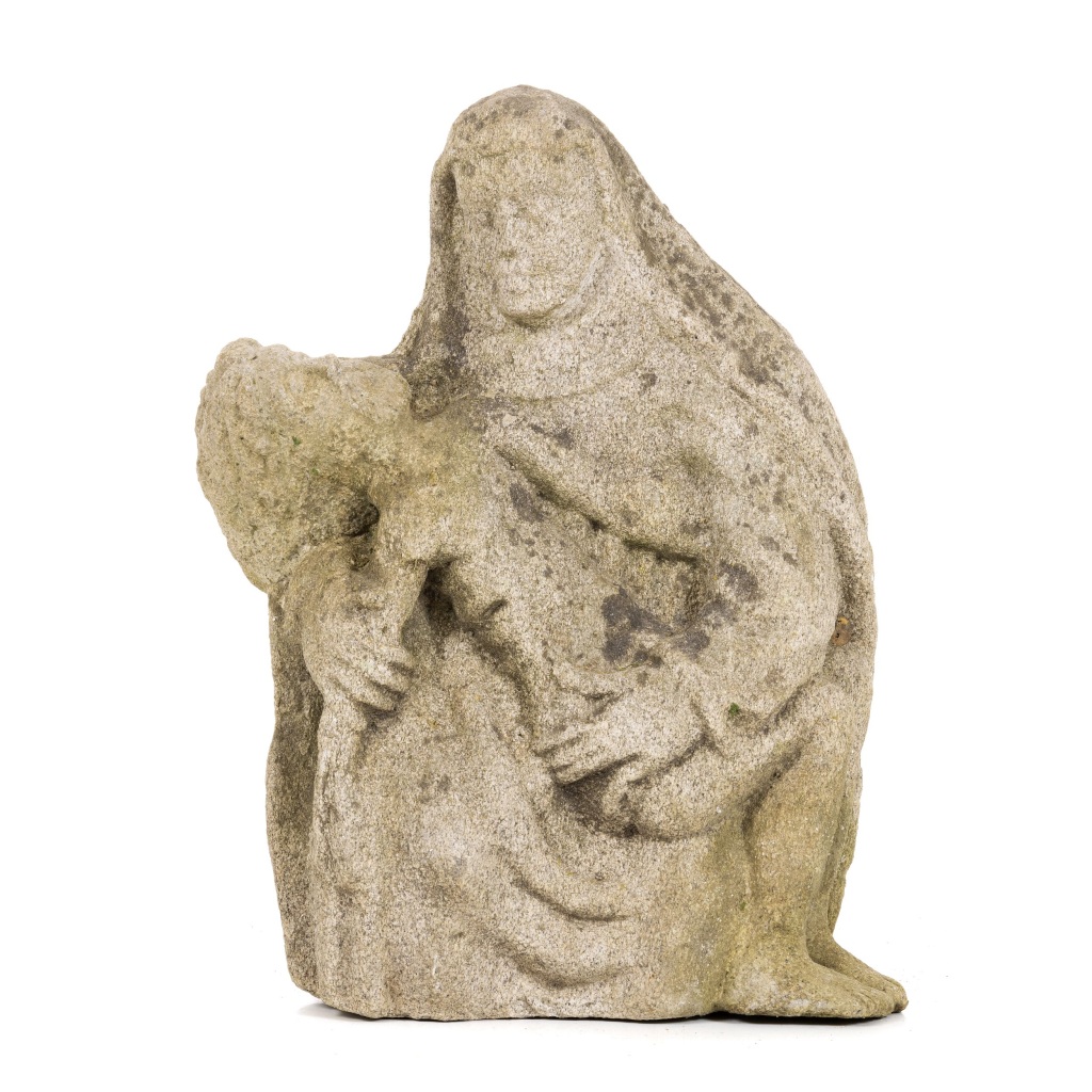 Portugal, séc.XIX, representação de pietá esculpida em granito. Dim.:46x32 cm