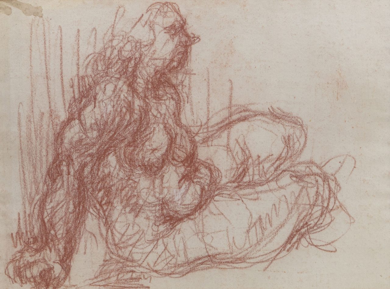 Desenho a giz sobre papel. Ligeiras manchas de humidade. Dim.:36,5x39,5cm.