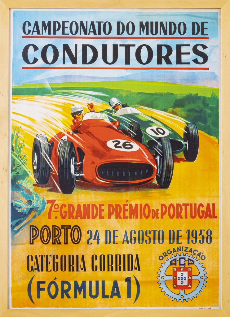 Impressão a cores sobre papel, 7º grande prémio de Portugal, Porto 24 Agosto de 1958, organização ACP. Emoldurado. Dim.:68x47 cm
