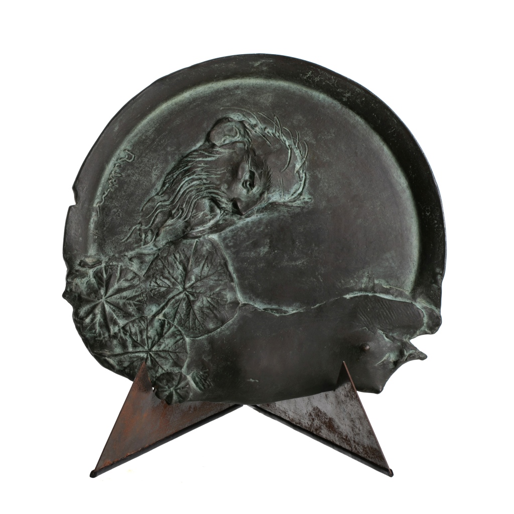 Escultura em bronze patinado, base em ferro, assinada e numerada 5/5. Dim.: 34cm