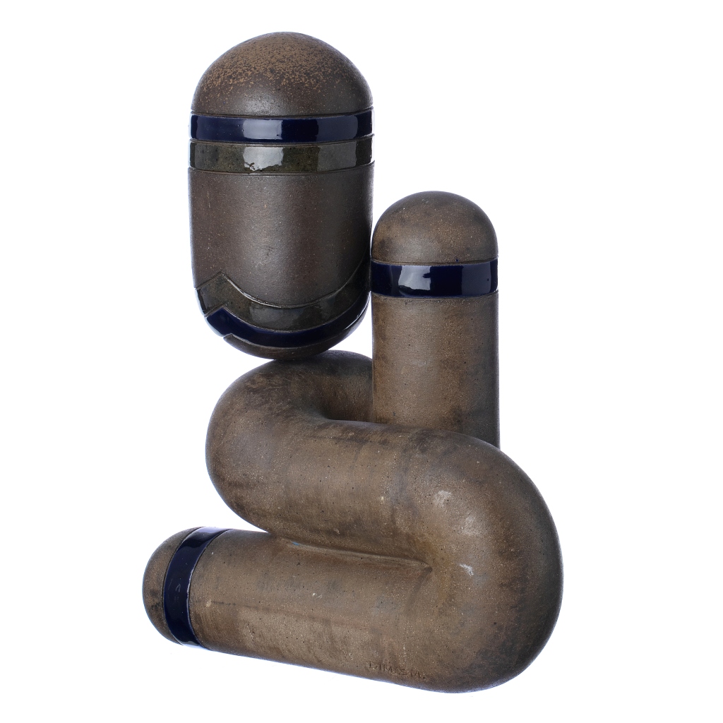 Escultura em grés, parcialmente vidrado, assinada. Dim.:40x30cm.