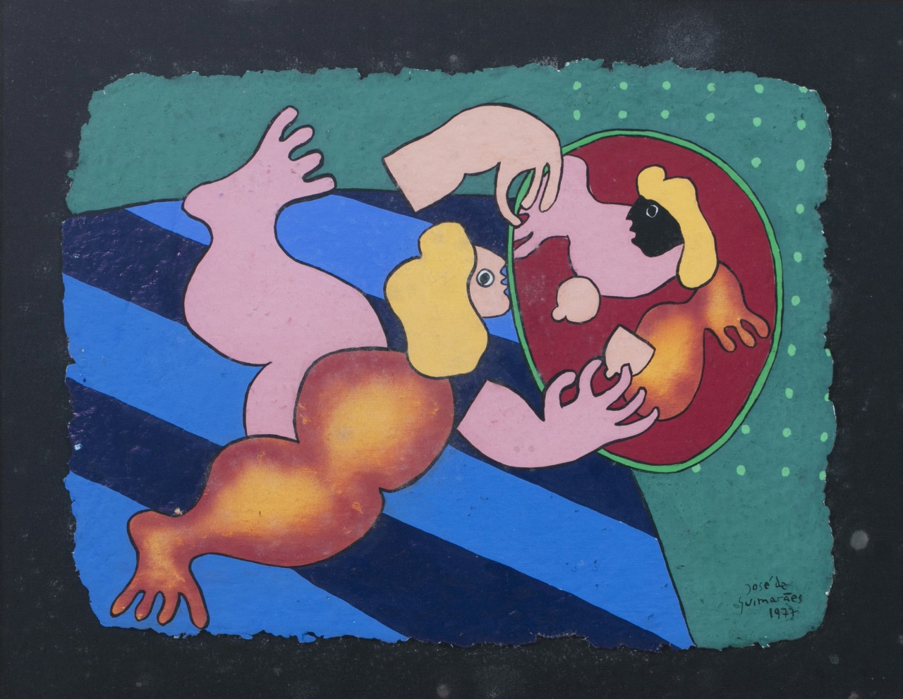Guache sobre papel marouflé, assinado e datado 1977. Dim.: 24x32 cm