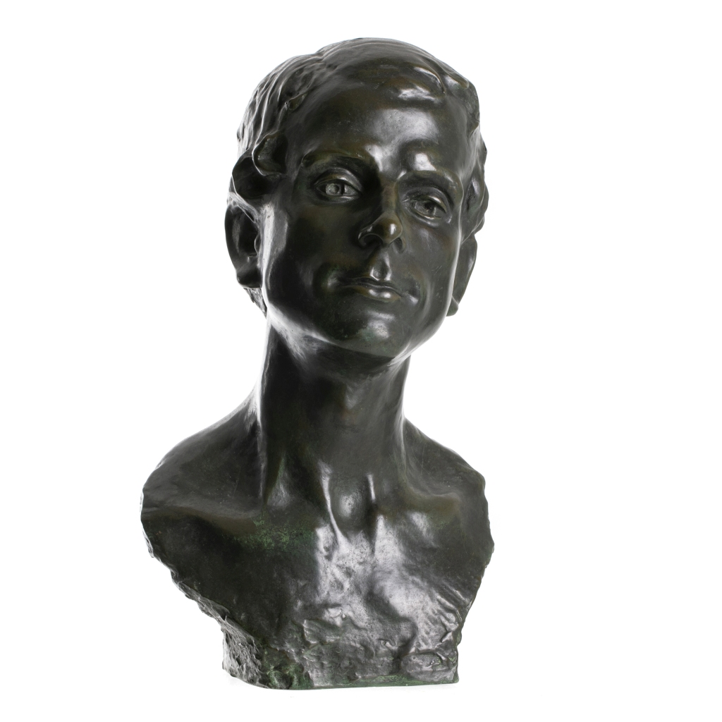 Escultura em bronze patinado, Notas: bustos idênticos encontram-se no Jardim da Cordoaria, Porto e no Jardim do Calvário, Penafiel. Dim.:44cm