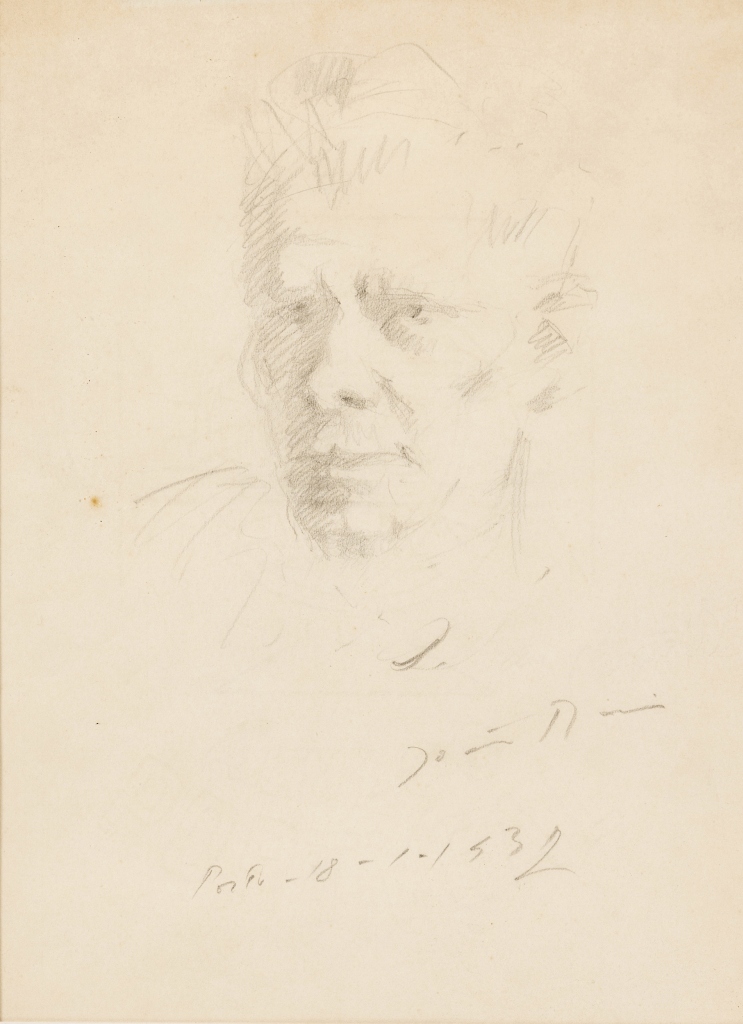Lápiz sobre papel, assinado e datado de 1932, possível auto-retrato do artista. Dim.: 28x20,5 cm