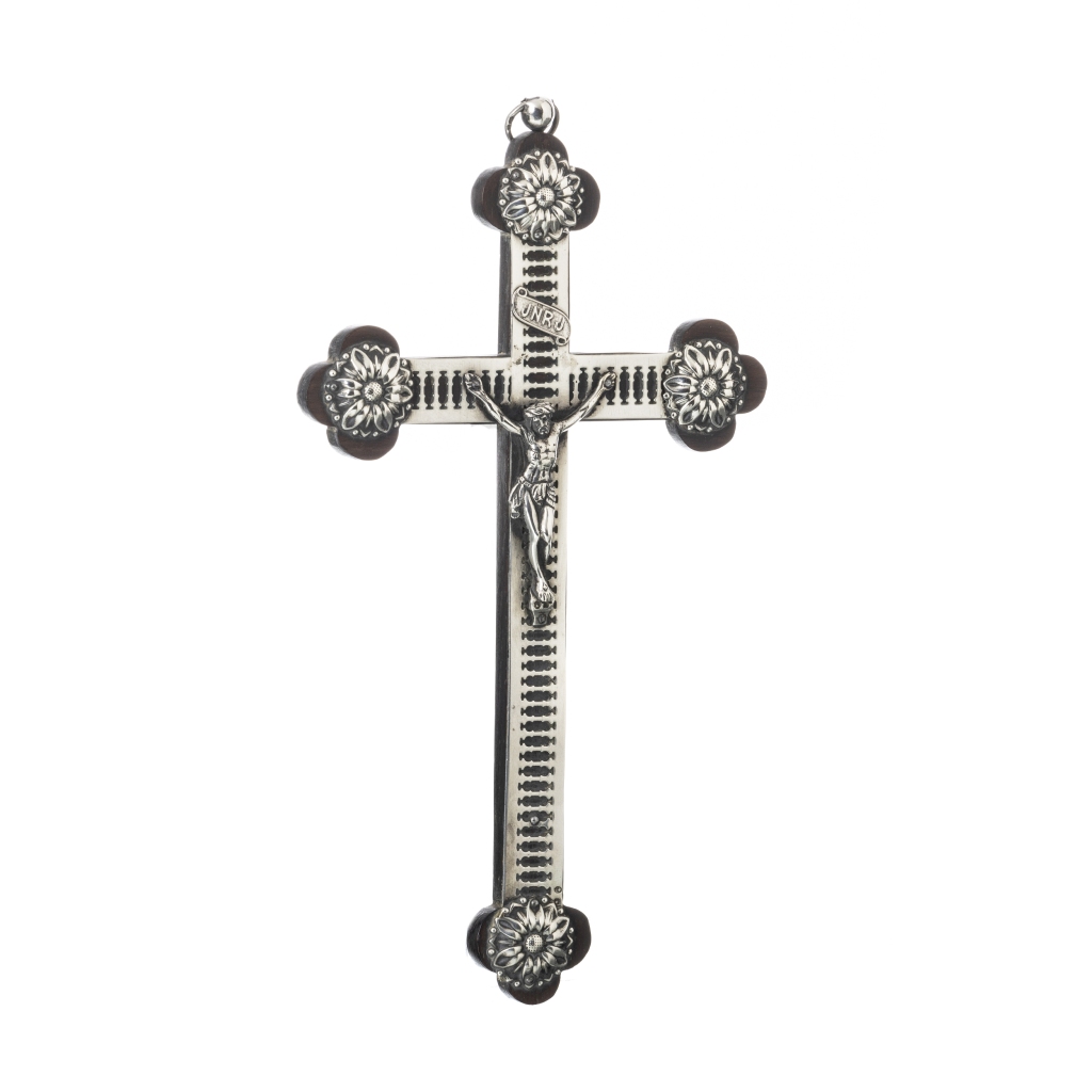 143. Crucifixo em madeira e prata
